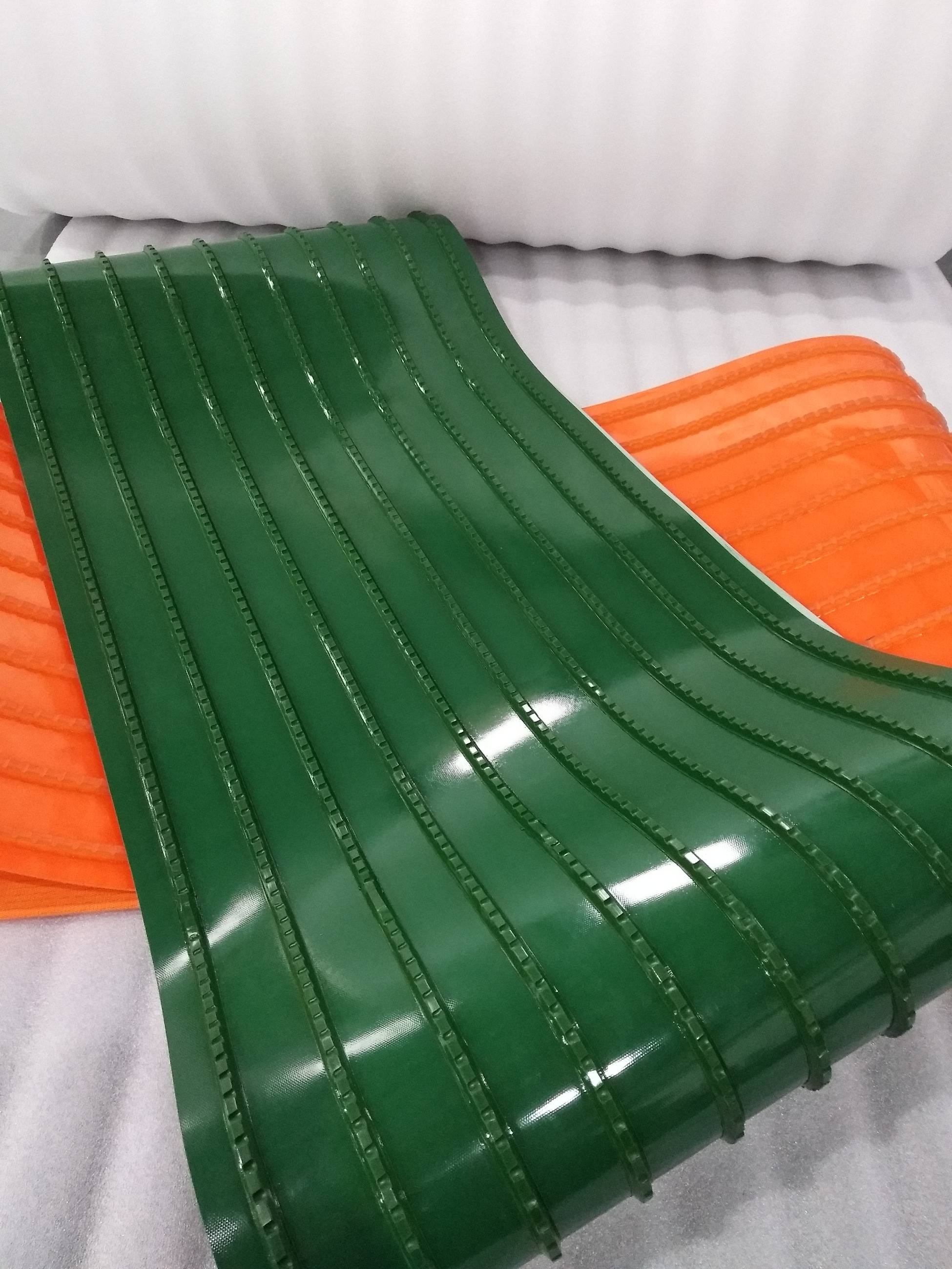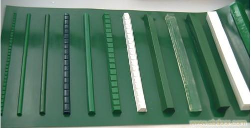 導(dǎo)條輸送帶,導(dǎo)條可加在表面或背面,加在背面能起到防跑偏的作用、加在表面可定位物料、承載物料。