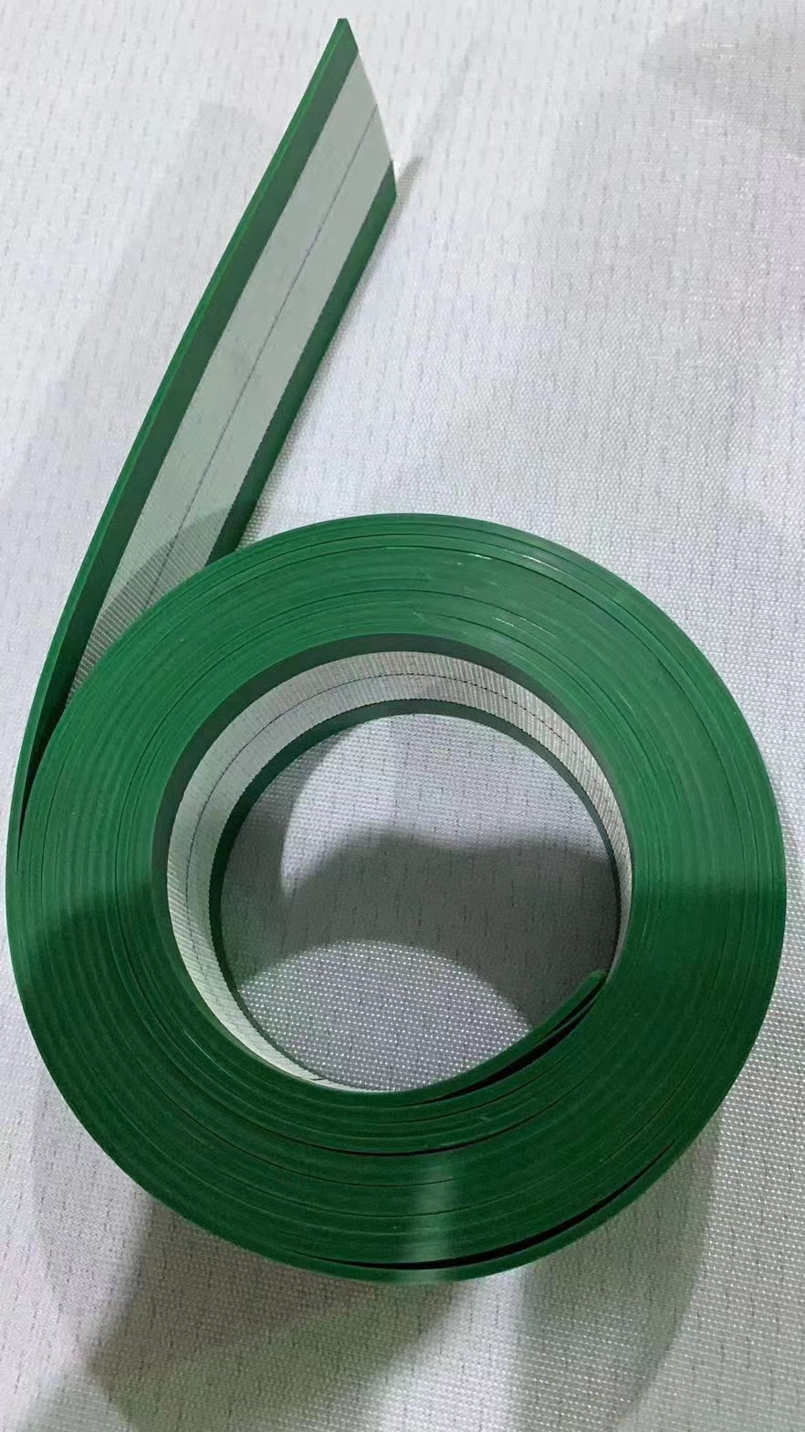 新能源行業:包邊打孔輸送帶,多用于鋰電池輸送中,如:疊片機的等;封邊、包邊輸送帶,更耐磨,防止皮帶磨邊后會起毛邊,掉屑等,影響到產品質量。